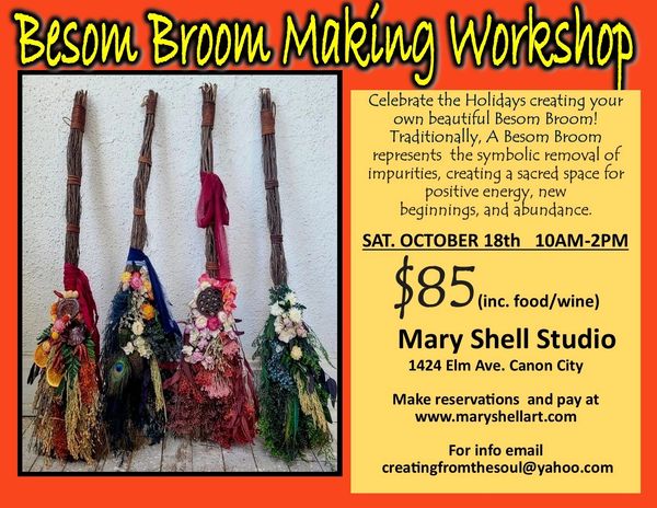 Come make a broom with foraged and gathered aspects. Call and e-mail after purchase to make sure your spot with Mary and the rest of the class is secure!